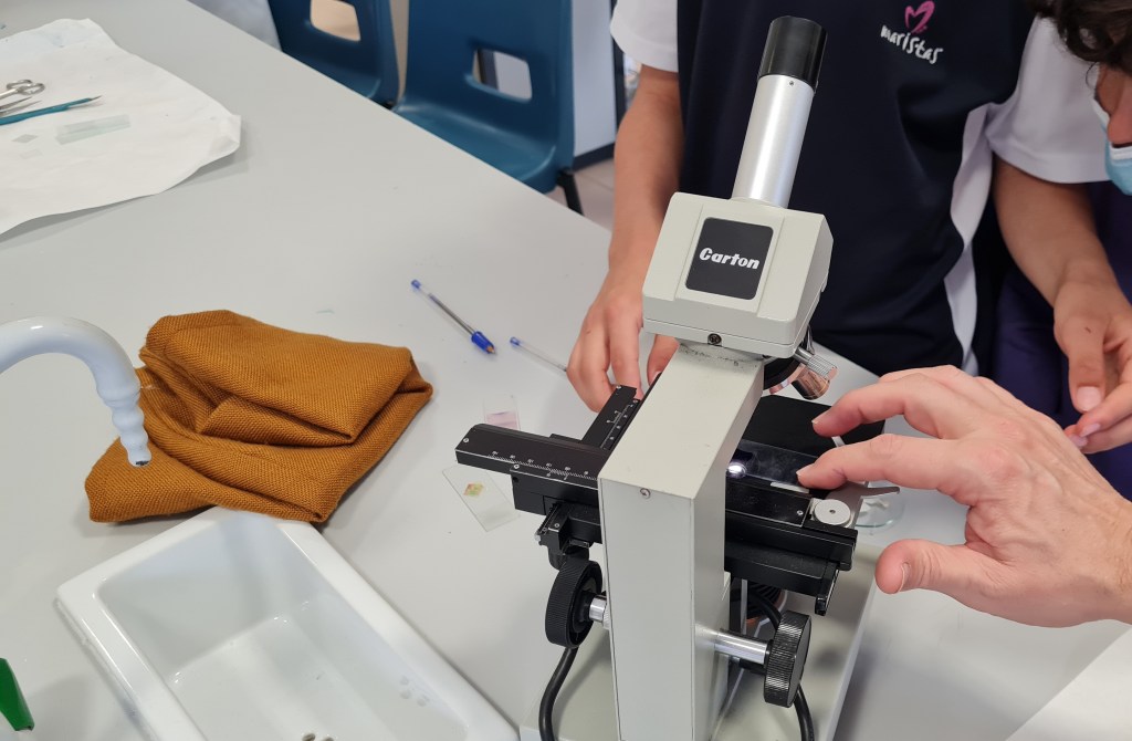 Los «profes» empezaron enseñándonos el funcionamiento básico del microscopio.