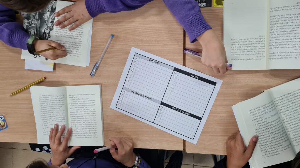 Seguimos en la clase explorando las mil y una formas en que las vocales se juntan (o se separan), un tema crucial que requiere mucha práctica: los diptongos e hiatos. Pero, en lugar de hacerlo de forma individual, ¡nos lanzamos al trabajo en equipo con una técnica cooperativa fantástica!