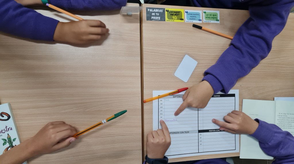 - Lo mejor de la jornada fue ver cómo se corregían entre ellos. Cuando un compañero proponía una palabra, los demás le recordaban: «¡No, esa lleva tilde en la ‘i’, así que es hiato acentual! Busca un diptongo.» ¡Ese peer learning no tiene precio!