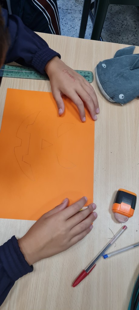 Esta es la manualidad que hicimos en plástica para Halloween.